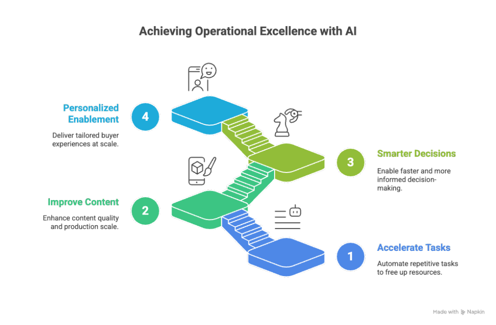 - Measure what matters: Beyond content volume, track whether AI improves pipeline velocity, win rates, and buyer trust.